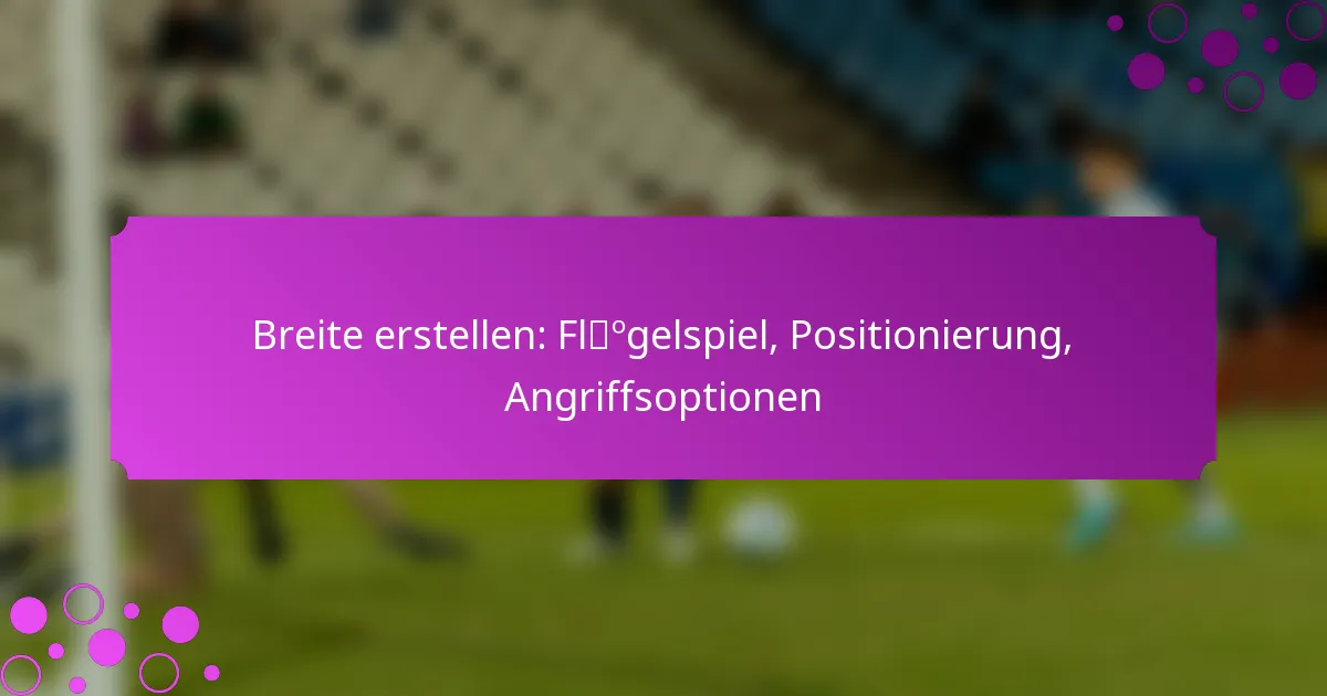 Die Schaffung von Breite ist entscheidend für effektives Angriffsspiel, und das Spiel über die Flügel ist die primäre Methode, um dies zu erreichen. Durch die Positionierung von Spielern an den Flanken können Teams die Abwehr des Gegners dehnen und sie zwingen, mehr Raum abzudecken. Dies kann zu Öffnungen im Zentrum des Feldes führen, wo Angreifer Lücken ausnutzen können.